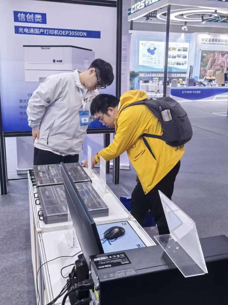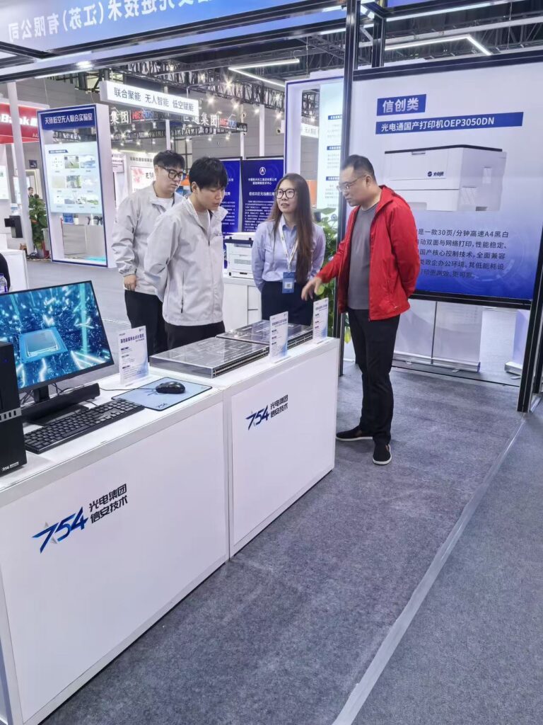 此次亮相,光电信安全面展示了在国产网络及办公设备领域的技术深耕与突破。通过实物演示、互动体验与专业讲解,光电信安团队将倾心打造的信创产品更具体、更细致地呈现给参观者。众多参观者驻足交流,近距离感受光电信安产品在政务办公、关键行业系统等领域的安全特性和卓越性能,深入了解了其在实际应用中的显著成效。